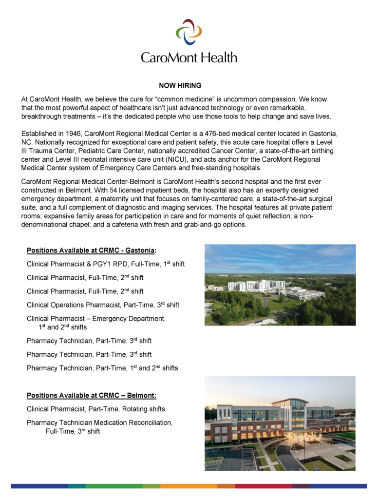 We are currently seeking highly motivated and clinically driven Pharmacists to join our dynamic healthcare team across a variety of specialties systemwide. If you are passionate about advancing patient care and optimizing pharmacotherapy, this is your opportunity to make a difference in a supportive and innovative environment.